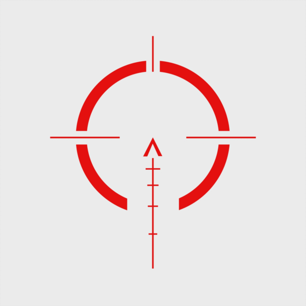 Typ siatki celowniczej: C44B (strzałka pusta 5,5 MOA, okrąg 44 MOA z BDC)