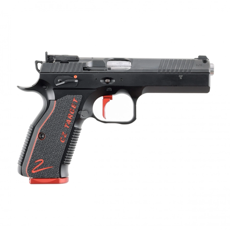 Wersja Target wyróżnia się szeregiem usprawnień – od ręcznie dopasowanej, grubościennej lufy 5″i 6″, po perfekcyjnie zestrojony spust single action z regulacją wstępnego i końcowego ruchu oraz odległości. W tej konstrukcji wszystko ma swoje miejsce – od zwiększonego podcięcia pod kabłąkiem, po rozszerzone nacięcia na zamku ułatwiające szybkie przeładowania.