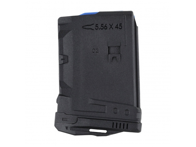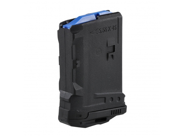 Magazynek ma kontrastowy podajnik o niskim współczynniku tarcia oraz sprężynę ze stali nierdzewnej, która nie odkształca się nawet przy dłuższym obciążeniu. Podajnik ma czterokierunkowe zabezpieczenie przed nadmiernym przechyleniem, co ogranicza ryzyko zacięcia podczas wprowadzania naboju do komory.